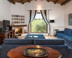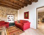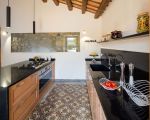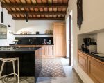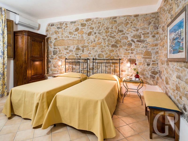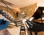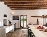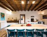 Im Erdgeschoss befindet sich ein Wohnzimmer mit offenem Kamin, ein großes Esszimmer (ein ehemaliger Stall mit Originalfußboden), eine moderne Küche, ein Arbeitszimmer mit Schlafsofa und Duschbad, ein kleineres Wohnzimmer mit Computer und Ausgang zur Terrasse, ein weiteres kleines Wohnzimmer, 1 Waschraum mit Waschmaschine und WC, 2 Doppelzimmer mit Duschbad und ein Zweibettzimmer mit Duschbad.