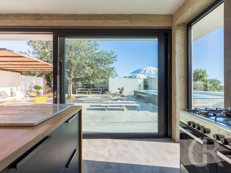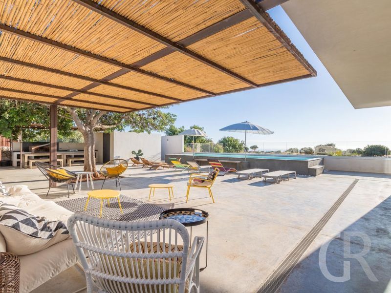 Von dem Pool mit einer Größe von 3m mal 9 m und einer Tiefe von 1,5 m hat man einen schönen Blick auf das Meer. Auf der Sonnenterrasse und unter der teilweise überdachten, sehr schön möblierten Terrasse lässt es sich wunderbar relaxen. Sie bietet zudem für Grillfans eine Sommerküche mit Barbecue.