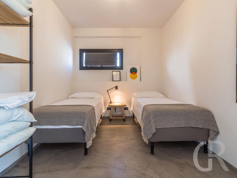 ein Schlafzimmer mit zwei Einzelbetten, ein Schlafzimmer mit Doppelbett, ein Schlafzimmer mit Doppelbett und Duschbad und das vierte Schlafzimmer mit Doppelbett, TV und Duschbad. Ein drittes Badezimmer befindet sich im Schlaftrakt.
