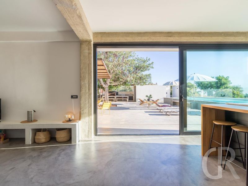 Innen ist die Villa Persefone hell und freundlich im nordischen Stil eingerichtet. Sie hat 4 Schlafzimmer und drei Duschbäder. Das große Wohnzimmer ist lichtdurchflutet durch die großen Fenster und den Ausgang zur Terrasse.