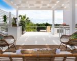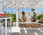 Die 200 qm große Terrasse ist gut ausgestattet und hat einen großzügigen Esstisch. Die Sommerküche verfügt über einen Ofen, Kühlschrank, Geschirrspüler und Grillplatz.