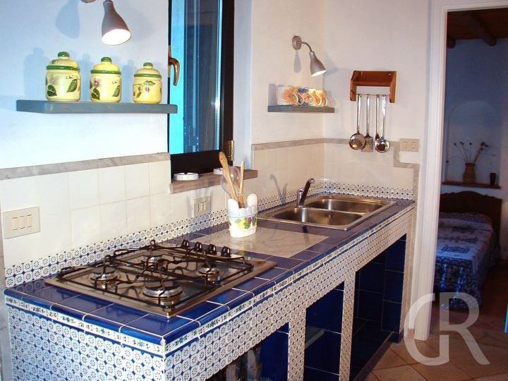 Die Wohnung ist gepflegt, mit alten sizilianischen Möbeln eingerichtet, gemütlich und hell und hat zwei Duschbäder und einen kleinen Abstellraum. Sie hat einen Wohnraum mit Schlafsofa für zwei Personen und über eine Treppe gelangt man zu einer offenen Galerie mit Doppelbett. Das Schlafzimmer mit Doppelbett hat einen Ausgang zur Terrasse.