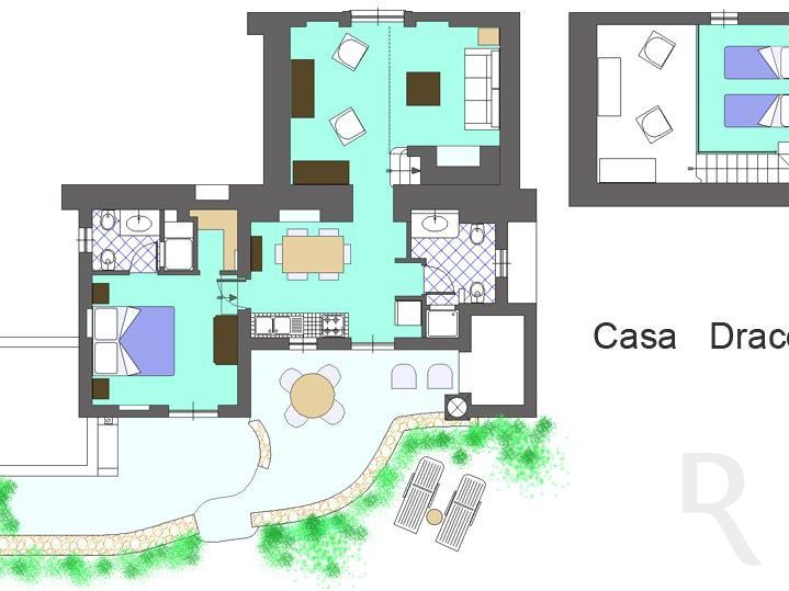 Die Casa Draco ist eine circa 75 qm große Ferienwohnung, optimal für 4 Personen geeignet, aber mit zusätzlichen zwei Schlafmöglichkeiten auf dem Schlafsofa im Wohnzimmer.